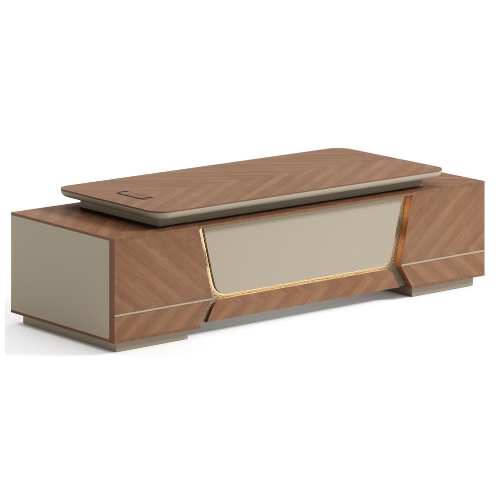 I-Shape Executive Office Desk – Compact E1 Grade MFC with Reversible Side Cabinets & LED Lighting​